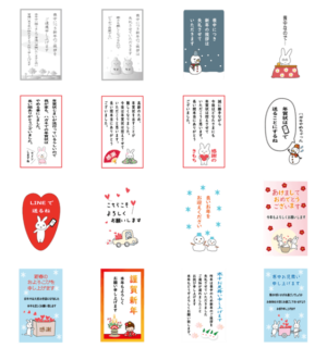 年末年始にハガキ風のお役立ちスタンプです。/喪中/年賀状じまいのお知らせ/年賀状をやめるときに/年末年始の挨拶/うさぎ/寒中見舞い/ ※このスタンプはトークルームで大きく表示されるBIGスタンプです。kayochi より発売