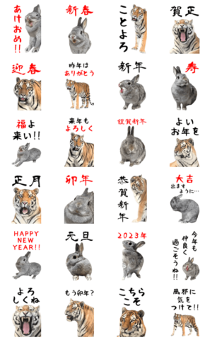 BIG年賀状☆ウサギとトラのお正月スタンプのダウンロードはこちら↓