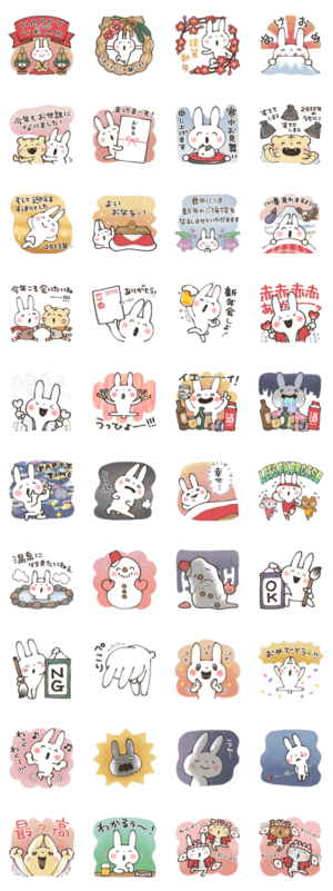 イラストレーターaya(kabitas)が描くスタンプ! 年末年始に使えるスタンプをたくさん作ってみました!※2023/1/3(火)23:59までに購入すると特典「LINEおみくじ」がもらえます。イラストレーター aya(kabitas)/双子座文具店 より発売