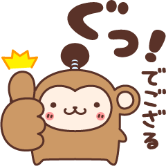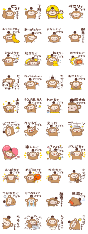 武士語っぽくしゃべるかわいいおさるのスタンプでござる⊂((o・⊥・o))⊃ほっぺ より発売