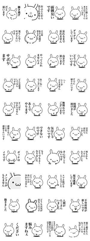 敬語でサボりたいウサギのスタンプです。やる気が出ない日常で使いやすいです。hoshico より発売