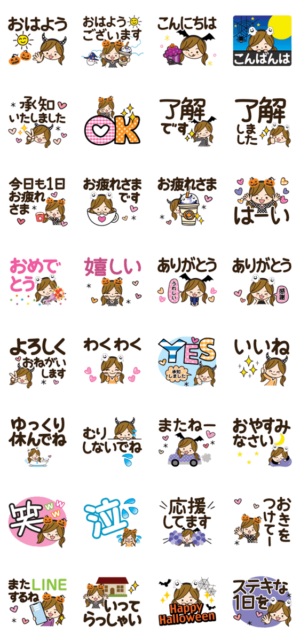 毎日使えるハロウィンのカチューシャを付けた女の子【デカ文字】♪大きな文字で使いやすい大人の親切で丁寧な言葉スタンプ♪ KEN graphic