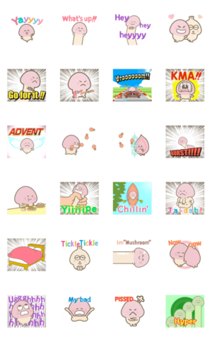【動く】がんばれ!きのこ君ぬるぬる英語版 スタンプ画像一覧