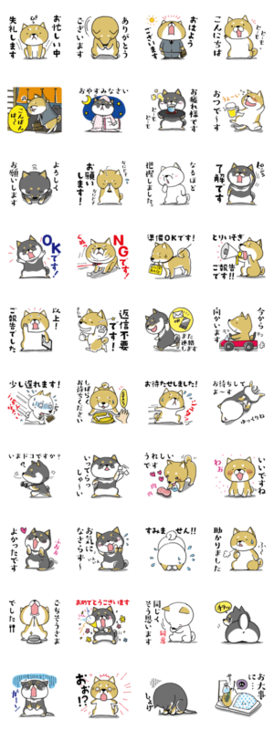 柴犬の敬語スタンプ。日常よく使う言葉を中心に、黒柴、赤柴、白柴でお送りします。平田美咲 より発売
