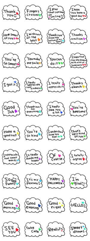 シンプルな日常会話スタンプです。英語スタンプnenerin より発売