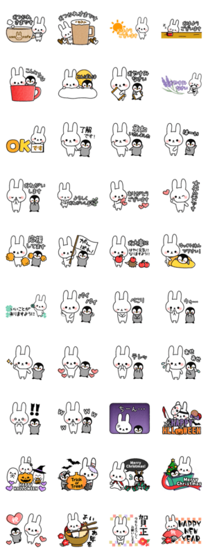 よく使うメッセージうさぎシリーズの秋冬イベント中心のスタンプです。ハロウィン・クリスマス・年末年始のイベントスタンプと日常で使えるシンプルスタンプのセットです。tohma より発売