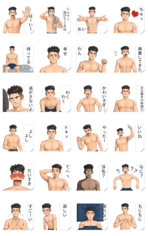 細マッチョイケメンのメッセージスタンプです。好きなテキストを入れられます! 現在この商品は一部のスマートフォン版LINE 10.3.0以上のトークルームでのみ使用できます。動作環境の最新情報はヘルプをご確認ください。栗子 より発売