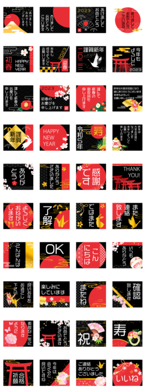 黒×金×赤の大人クールな年賀状2023 スタンプ情報