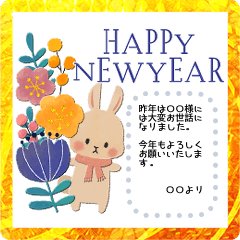 水彩タッチの優しいウサギの年末年始に使えるあけおめスタンプです。