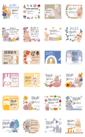 通常のメッセージにも使えます。ハッピーニューイヤー/2023/あけましておめでとう/謹賀新年/迎春※2023/1/3(火)23:59までに購入すると特典「LINEおみくじ」がもらえます。