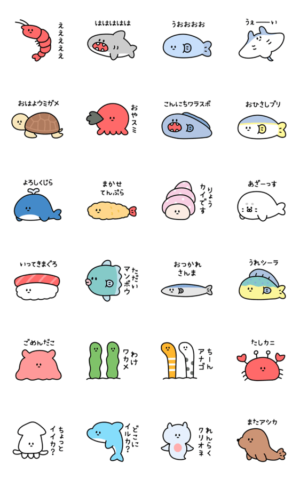 斬新な動きの生き物達のスタンプ。めっちゃビチビチ動きます。かわいい
