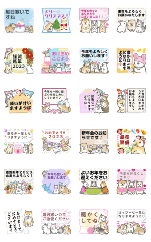 犬猫兎がモチーフの年末年始に合わせたデザインのメッセージスタンプです。100文字までテキストが入力可能です。※2023/1/3(火)23:59までに購入すると特典「LINEおみくじ」がもらえます。 現在この商品は一部のスマートフォン版LINE 10.3.0以上のトークルームでのみ使用できます。動作環境の最新情報はヘルプをご確認ください。YUKITAKI より発売