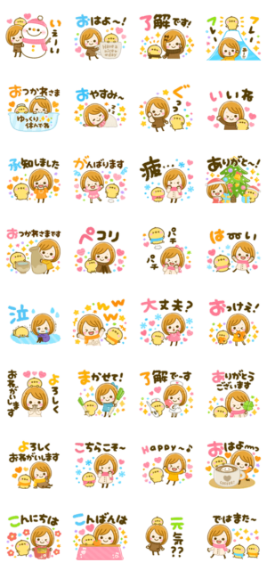 毎日使える言葉と相手を思いやる心遣いの言葉がたくさん!カラフルで大人可愛い季節のスタンプです♪
