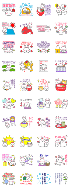 可愛いウサギのシンプル年賀状セットです♪冬の日常にも♪年末年始のご挨拶にも♪ うさぎ/卯年/年末年始/年賀状/お正月/年越し/挨拶/誕生日/クリスマス※2023/1/3(火)23:59までに購入すると特典「LINEおみくじ」がもらえます。mittens より発売