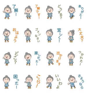 おしゃれなおばあちゃんのスタンプです。hirame より発売