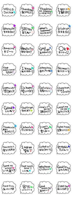 シンプルな日常会話スタンプです。日本語&英語スタンプnenerin より発売