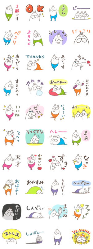 シンプルなワードを集めたスタンプです。大きなサイズの文字でみやすく、家族や友だち、同僚などにも送りやすいのでねこタイツと一緒にサクサクトークしていきましょう。