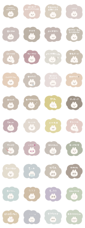 シンプルくすみカラーのお正月うさぎスタンプ♡卯年/兎/ウサギ/2023/毎日使える日常会話挨拶※2023/1/3(火)23:59までに購入すると特典「LINEおみくじ」がもらえます。