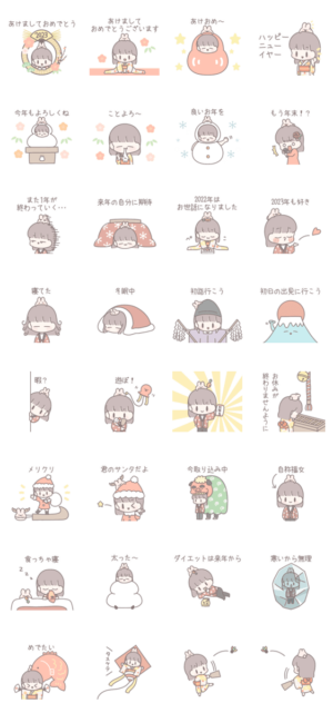 友達や恋人に使える、年末年始用のスタンプです。関連用語:かわいい/うさぎ/兎年/冬/あけおめ/カップル/年賀状/クリスマス/家族/面白い/ネタ/2023年※2023/1/3(火)23:59までに購入すると特典「LINEおみくじ」がもらえます。からしれんこ より発売