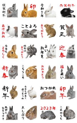 卯年☆うさぎ大集合☆あけおめ年賀スタンプのダウンロードはこちら↓