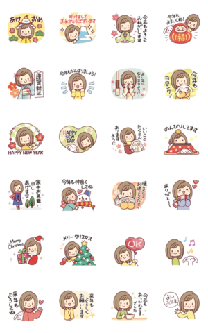 女の子がいっぱい!【動く! 年末年始】 スタンプ情報
