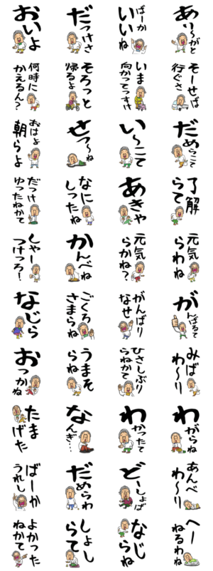 新潟弁おばあさんの【デカ文字】スタンプです。文字が大きいので、すごく読みやく、わかりやすいスタンプになってます。全国47都道府の県の方言スタンプも好評販売中です。 ※このスタンプはトークルームで大きく表示されるBIGスタンプです。Brody Machine より発売