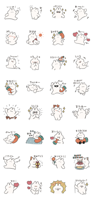 ノリノリというよりはゆるゆるな雰囲気のうさぎさんのスタンプ。ある程度の華やかさはありながら派手過ぎないのが良い。