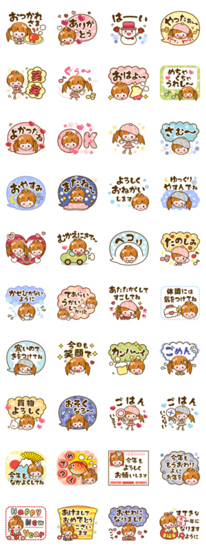 寒い冬 冬の日常 年末年始 お正月(あけましておめでとう 今年もよろしく)家族連絡等!冬に便利なCute girl6 スタンプ(※期間限定だったものの再販になります)❤作:usakazu1