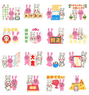 年賀で使えるスタンプです。※2023/1/3(火)23:59までに購入すると特典「LINEおみくじ」がもらえます。