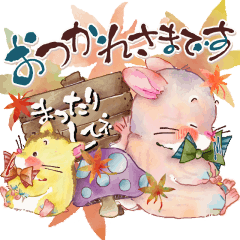 ハムスターのぷりんとチンチラのめろんの仲良しコンビの秋スタンプです。秋、しみじみと深まりぬ…動きます❣️