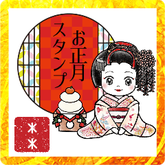 お正月や年間のイベントに使える舞妓ちゃんのカスタムスタンプ。「卯年」等の干支を入れたり、名前を入れて、自分だけの判子を押したようなオリジナルスタンプが作れます。※2023/1/3(火)23:59までに購入すると特典「LINEおみくじ」がもらえます。サエコロモン より発売
