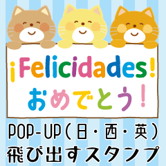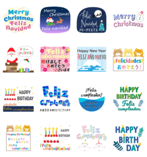 画面前面に動くスタンプが表示されるポップアップスタンプ☆スペイン語と日本語でのコミュニケーションに♩ 誕生日/クリスマス/正月/年末年始/español/japonés/castellano