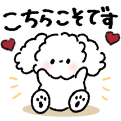白くてモフモフ可愛い犬♪ 敬語や気づかい、日常で使いやすいスタンプです♡yopink より発売