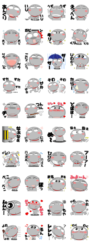 ほくろがキュートな地蔵のスタンプ。擬音語、擬態語を「あいうえお順」に揃えてみました。文字も大きめのデカ文字系スタンプ。見やすい、使いやすい、毎日使える。
