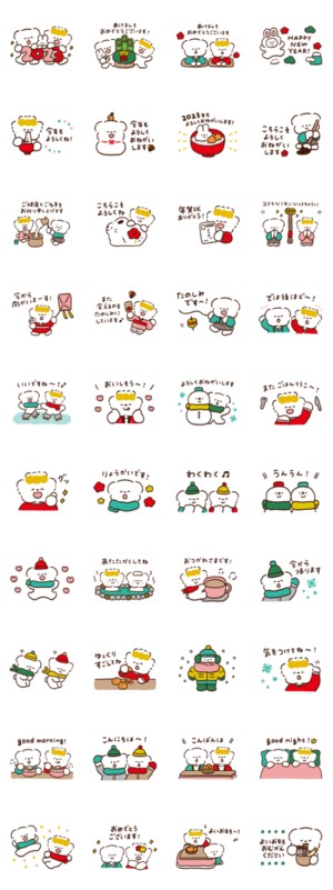 もふもふしたくなる柔らかい犬です。Instagramでも人気の2匹があけおめスタンプになりました。年末年始はもちろん。冬の日常に使えるスタンプを集めました。(お正月)※2023/1/3(火)23:59までに購入すると特典「LINEおみくじ」がもらえます。こはらなつ より発売