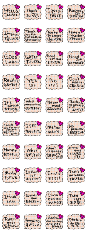 シンプルな日常会話スタンプです。日本語&英語スタンプ