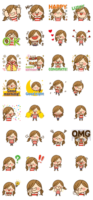 女の子が題材のスタンプ。説明もメッセージも英語のみである点は注意。しかし絵柄は日本人にもウケが良いもので、日本人相手にも普通に使いやすい。