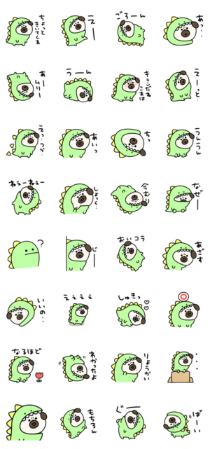恐竜になった。シュールなミニパグのスタンプです。eribo より発売
