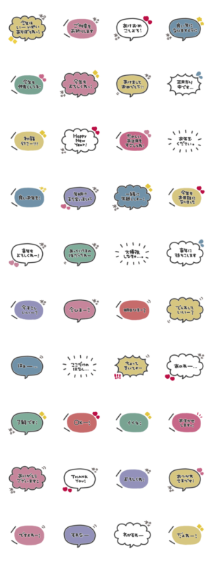 こちらのスタンプは2022年の再販になります。 1つあると便利なメッセージスタンプです。シンプル/大人可愛い/あいさつ/吹き出し/手書き/正月