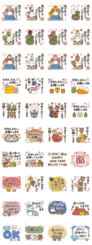 干支が何であっても使えるスタンプです。動物がいっぱいで見ていて楽しいです。