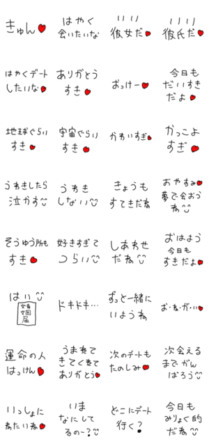 イチャイチャ、パートナー、夫婦、メンヘラ、子供の字、こども、文字スタンプ、面白い、かわいい、かっこいい、パートナー