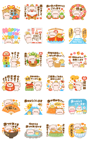 毎年使える♡こぶたのぽこちゃんのお正月♡年賀スタンプです。年末年始※2023/1/3(火)23:59までに購入すると特典「LINEおみくじ」がもらえます。ぴよたぬき♡ より発売