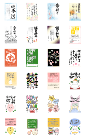年賀ハガキと同じように送ってペーパーレス☆これなら元旦着のポスト投函も心配無し♫可愛いデザインから大人なデザインまで揃っています。※2023/1/3(火)23:59までに購入すると特典「LINEおみくじ」がもらえます。