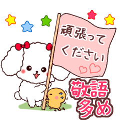 日常使いに便利な仲良しの方への気軽な言葉と目上の方や上司にも使える敬語の両方が揃ったやさしいスタンプです。トイプードルのトイプーちゃん♡