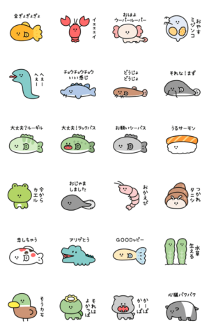 プルプル動く川の生き物【ゆるいダジャレ】 スタンプ画像一覧