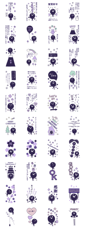 わっしょいくんのBIGスタンプです。年末年始/日常/挨拶/年賀状/寒中見舞い/クリスマス/年越し/わっくん/大人/かわいい/女子/男子/友達/家族/敬語/大きい/紫色/むらさき/※2023/1/3(火)23:59までに購入すると特典「LINEおみくじ」がもらえます。aia より発売