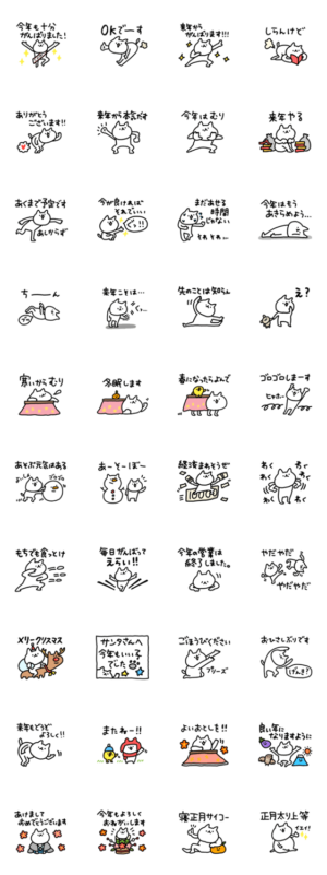 来年から頑張るしょぼいねこのスタンプ クリスマス 正月 年末年始 あけおめYOSHIDA より発売