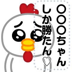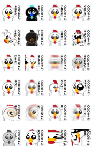 〇〇〇ちゃん部分に好きな子の名前を入れてメッセージを送ろう/ぴえんMAX/ニワトリ/鳥/ピエン/ラブラブ/大好き/毎日使える/日常会話/挨拶/カップル/恋人/彼氏/彼女 現在この商品は一部のスマートフォン版LINE 10.3.0以上のトークルームでのみ使用できます。動作環境の最新情報はヘルプをご確認ください。4A-Studio(よんえーすたじお) より発売