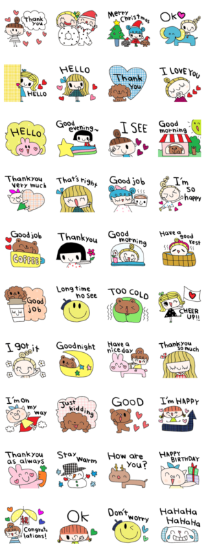 シンプルな日常会話スタンプです。英語スタンプnenerin より発売