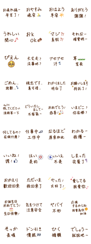 手書き日本語&中国語スタンプのダウンロードはこちら↓